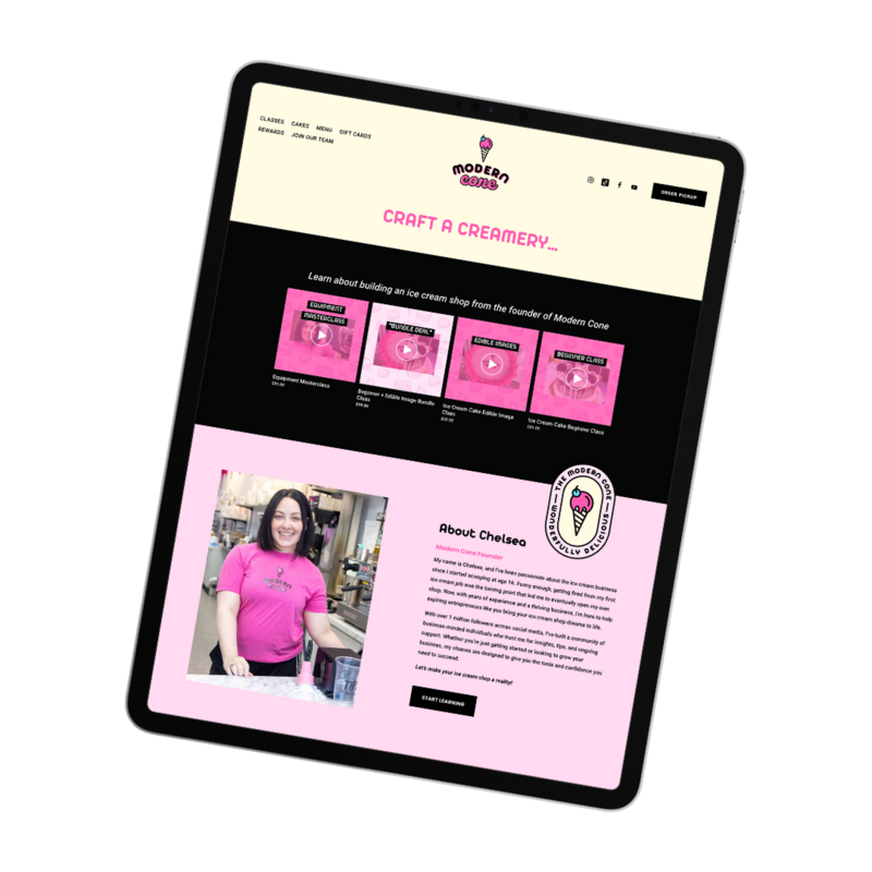 One of the most iconic ice cream shops on TikTok, Modern Cone is a family-owned gem in Michigan celebrated for its bold personality, playful vibe, and creative vlog-style content. Modern Cone's branding captures their high-energy atmosphere, customizable treats, and unique approach to connecting with their audience.
