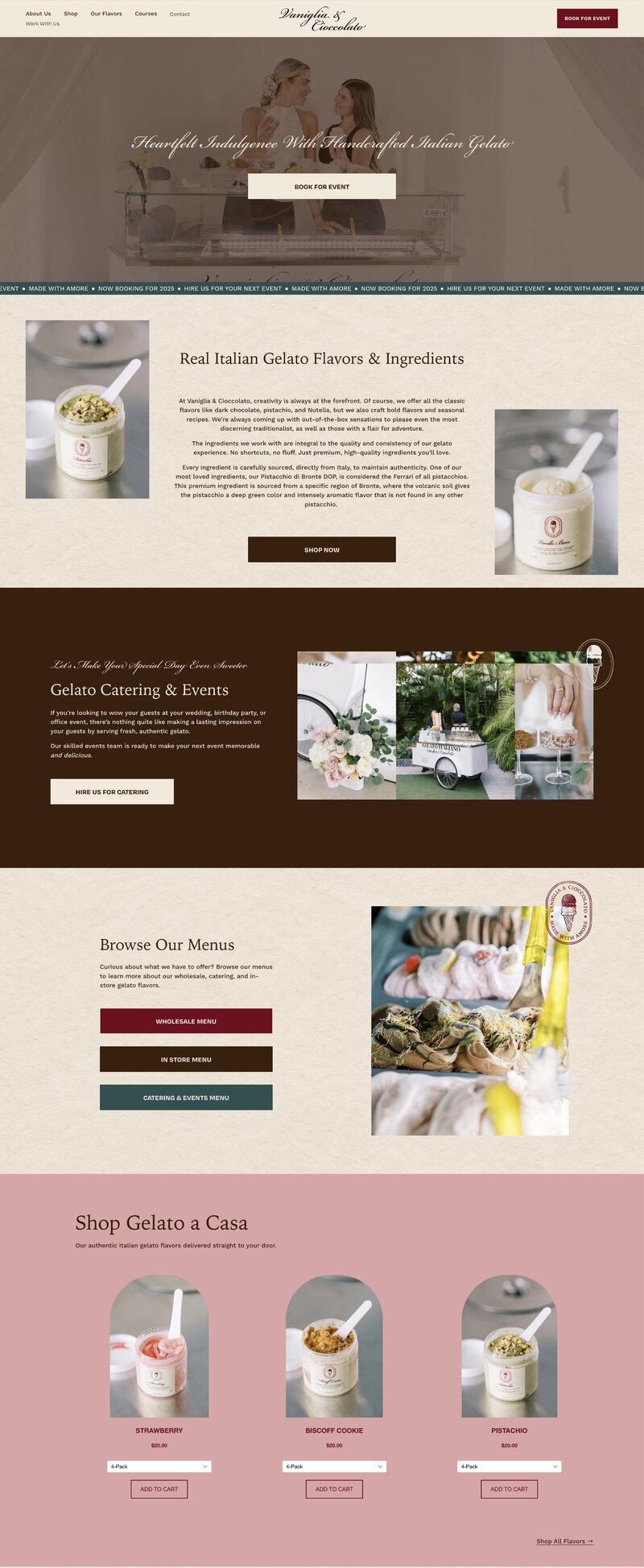 Vaniglia & Cioccolato had years of history but their brand didn't match the way they had evolved in recent years. Together, we completely reimagined their brand, website, signage, and packaging to match the premium quality of their craft… blending generations of tradition with a refined, modern aesthetic that feels luxurious, intentional, and authentic.